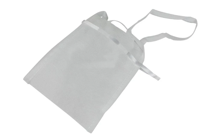 Saco branco translúcido com cordão e alça sobre fundo branco